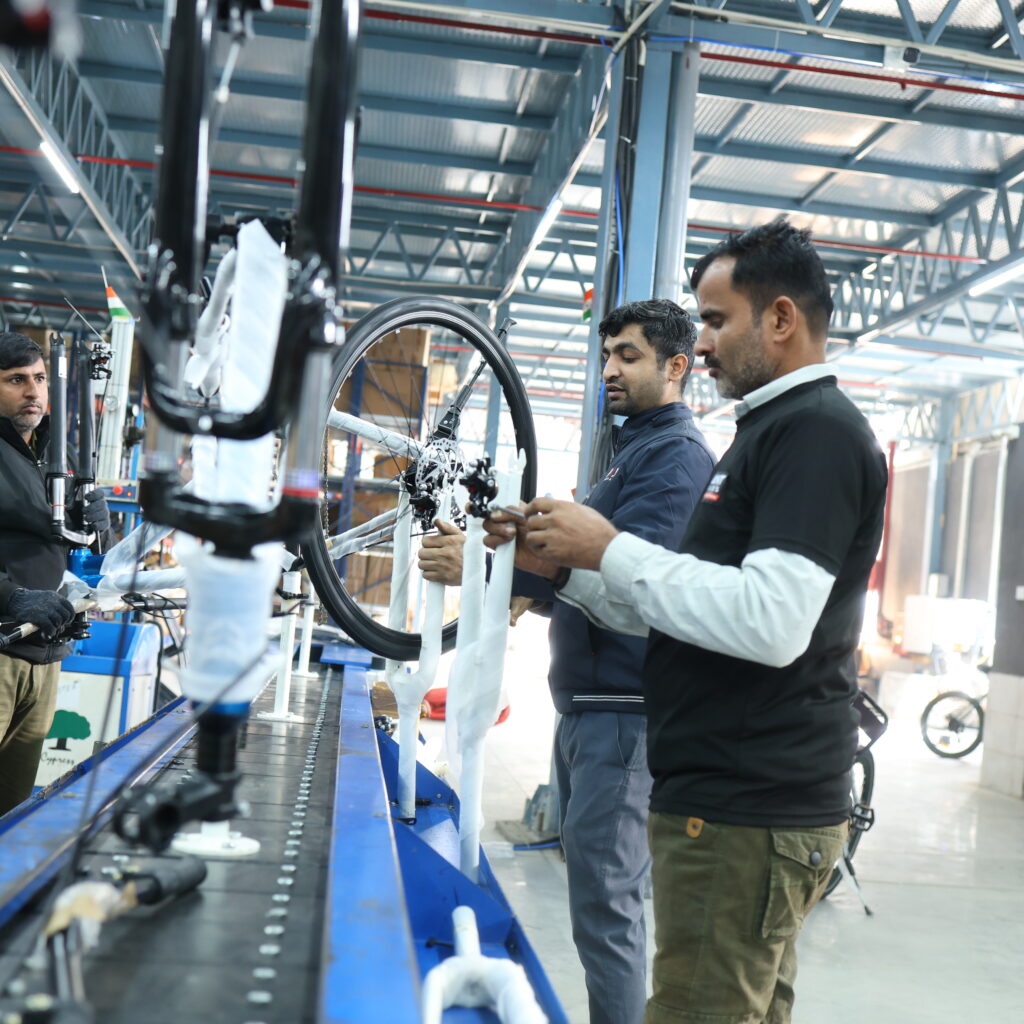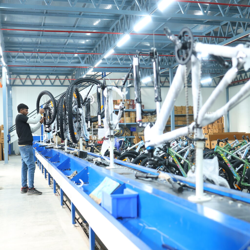Every bicycle is assembled with precision and care through our fully integrated in-house assembly line. From frame preparation to component fitting, alignment, quality checks, and final finishing, each stage is handled by trained technicians following standardized processes. Our controlled assembly environment ensures consistency, accuracy, and superior ride quality across all bicycle models. With streamlined workflows and strict quality checkpoints at every station, we maintain complete control over the build process—ensuring that every cycle leaving our plant meets our high standards of durability, safety, and performance.